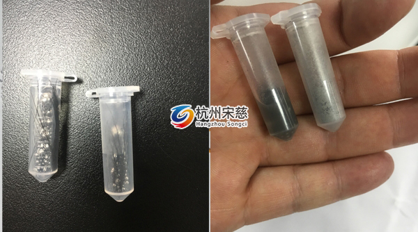 2.將裝好樣品的研磨管內(nèi)放入鋼珠,